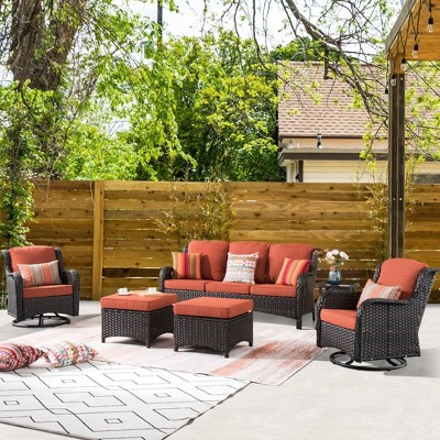 Ovios Orlando 8pc Gray Wicker Outdoor Patio Furniture Conversation Sofa Set with Swivel Chairs and Denim Blue Cushions