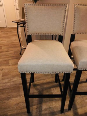 NAILHEAD ACCENTS: These barstools spare no expense when it comes to its finishing details. Expertly styled, this piece has tasteful nailhead accents bordering the edges. Each nailhead is individually applied for a beautiful, hand-crafted touch.