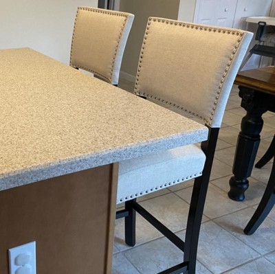 The stools are lighter than they appeared in the pictures - they are closer to an off-white than dark beige. Also, there were no instructions included in the packaging and no support available online so we had to wing it putting the stools together. They seem sturdy, are comfortable and are a good height for our counter.