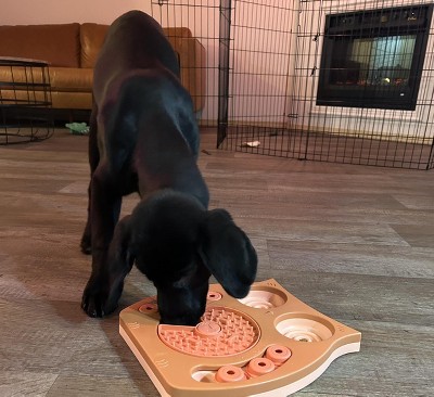 Our dog is really enjoying the different areas of this puzzle toy.