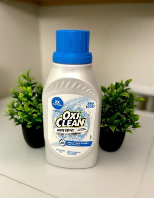 - A BRIGHTER CLEAN: 66 fl oz bottle of OxiClean White Revive Whitener & Stain Remover Liquid Additive; use with detergent to brighten faded whites and remove tough stains
