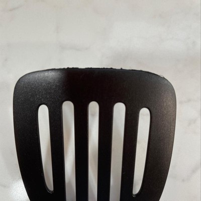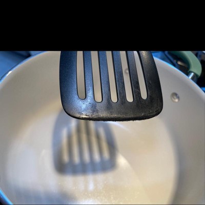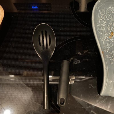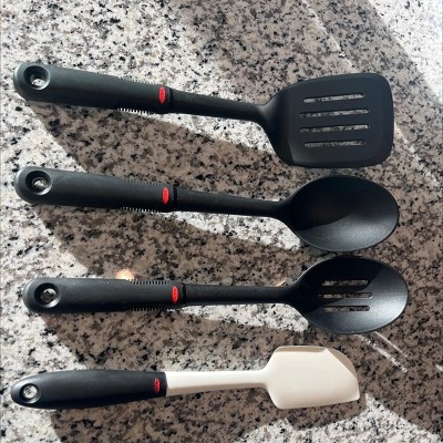 A: Hello, This is Eric from OXO. Thank you for this inquiry on Target.com. The dimensions of the utensils laying on a flat surface are as follows: - Nylon Spoon: 13.2in (L) x 2.4in (W) x 1.4in (H) - Nylon Slotted Spoon: 13.2in (L) x 2.4in (W) x 1.4in (H) - Nylon Turner: 13.2in (L) x 3.32in (W) x 2in (H) - Silicone Spatula: 12in (L) x 2in (W) x .7in (H) Best, OXO