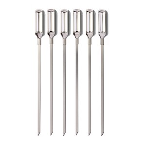[This review was collected as part of a promotion.] I really like these skewers. The flat blade keeps whatever i'm cooking from spinning when I flip them over. They're also long enough to fit a lot of food. I find them much better than bamboo skewers which sometimes splinter, should be soaked before using and aren't reusable. I definitely recommend these skewers for anyone who likes to BBQ.
