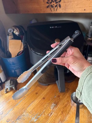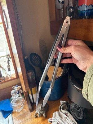 - 9-Inch stainless steel Tongs lock closed for simple storage