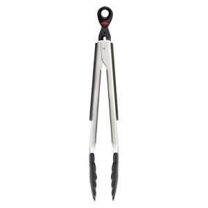 The OXO SoftWorks 9-Inch Locking Tongs with Nylon Heads are perfect for use with pots, pans, griddles, woks and more. The stainless steel Tongs can grab and flip everything from whole vegetables to thick-cut meats. They're heat resistant up to 400 F and won't scratch sensitive surfaces. The Tongs also feature scalloped heads, non-slip grips and comfortable thumb rests. When you're finished, simply put the Tongs in the dishwasher for easy cleaning, then lock and store them using the convenient pull tab.