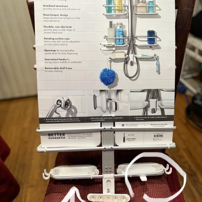 Surprised that product arrived in one piece. The box had holes and tears in it and one side was completely open. It was delivered by the US Post Office. WHY? Target does not give you an option, delivery only. Good sturdy caddy for hand held shower head.