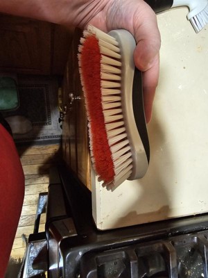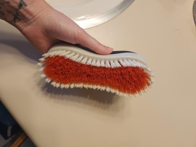 [This review was collected as part of a promotion.] This is a great scrub brush that fits comfortably in my hands. I used it for several projects inside and outside of my house. The brush gets all of the little bits of grime and comes clean easily afterwards for the next job.