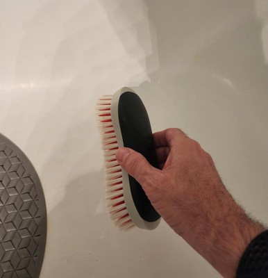 [This review was collected as part of a promotion.] This is a super durable brush! I like the way it fits in my hand - not too big or too small - but also it's a good size for cleaning tough places like the corners of the bathtub. Easy to rinse and lay to dry as well.