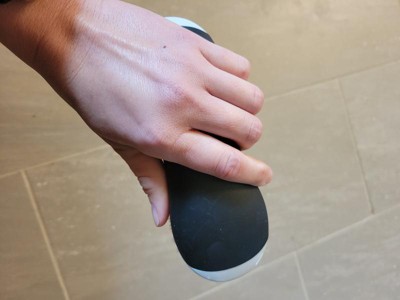 [This review was collected as part of a promotion.] This brush is great! It's just the right width for grasping when cleaning. My hand didn't cramp during the cleaning process nor was it uncomfortable. A lot of times, scrub brushes are hard to grip for an optimal clean. I had no issues with this brush and it's been super helpful in keeping my newly renovated bathroom clean. :)