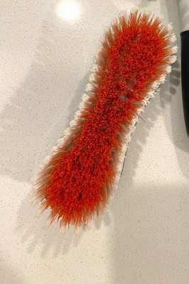 The OXO Soft Works Heavy Duty Scrub Brush is perfect for cleaning countertops, tubs, shower stalls, concrete floors and other large surfaces. The two types of stiff nylon bristles won't lose their shape, no matter how hard you scrub. The Brush features a durable handle that fits the palm of your hand, and a soft, pressure-absorbing grip that won’t slip, even when wet.