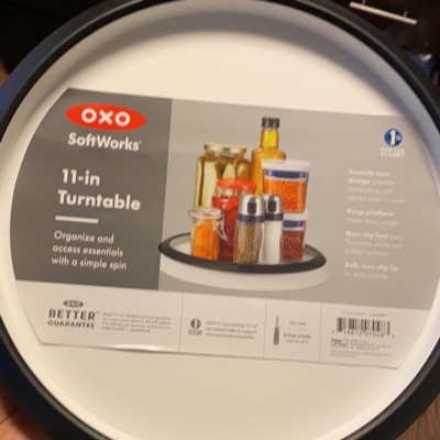 A: Hello, This is Eric from OXO. Thank you for this question on Target.com. The Lazy Susan diameter is 11in. Best, Eric