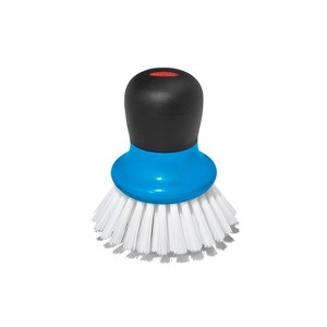 Good things come in little packages – the OXO Palm Brush might be small, but it packs a punch. This all-purpose brush is perfect for cleaning for dishes, pots, pans, and more. The durable nylon bristles are safe for non-stick or ceramic cookware and bakeware, but tough enough to get out even baked-on messes. The rounded handle of the Palm Brush is easy to hold at any angle, and the wide handle base keeps your knuckles out of the way while you’re putting in a little elbow grease. The soft, comfortable grip is non-slip, even when wet, and the Palm Brush is top-rack dishwasher safe. Good things come in little packages – the OXO Palm Brush might be small, but it packs a punch. This all-purpose brush is perfect for cleaning for dishes, pots, pans, and more. The durable nylon bristles are safe for non-stick or ceramic cookware and bakeware, but tough enough to get out even baked-on messes. The rounded handle of the Palm Brush is easy to hold at any angle, and the wide handle base keeps your knuckles out of the way while you’re putting in a little elbow grease. The soft, comfortable grip is non-slip, even when wet, and the Palm Brush is top-rack dishwasher safe.