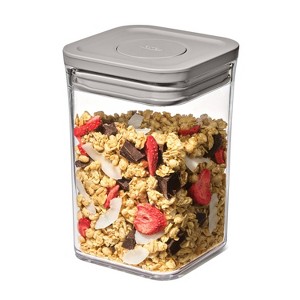 The OXO POP Container in 1.1 L is small sized storage that offers a solution to household clutter. Ideal for pink salt, brown sugar or tea, the compact design brings order and organization as well as space maximization. POP Containers have clear visibility which makes searching for what you need a breeze. The push button lid locks in freshness with an airtight seal. These containers are durable enough to withstand everyday wear and tear. Plus, they’re dishwasher safe. OXO snack containers are made for easy organization and storage. Food storage containers with lids are an important part of any kitchen organizational system. We guarantee that these food containers don’t spill. POP is also perfect for craft supplies, not just as food and snack containers.