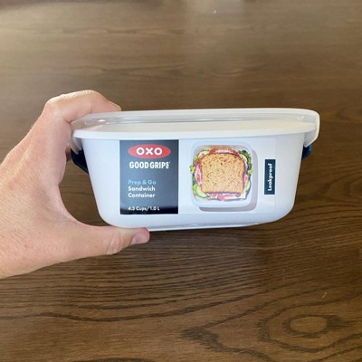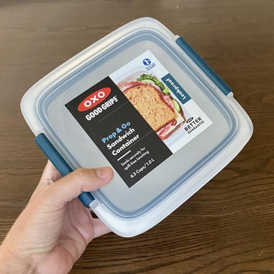 [This review was collected as part of a promotion.] When it comes to lunches and snacks, I make a ton of those for my 3 boys and husband. This was the perfect sandwich container for them. They all took turns using it and they really loved it. It fit a sandwich and some vegetables on the side. Very convenient, easy to open, and close. It is also very simple to wash. The kids loved this so much they have asked for one for themselves. They also love using these for weekend fruit snacks(apples, grapes, watermelon, pear, and sliced oranges) while at the park. I highly recommend this high quality OXO Prep & Go sandwich container!