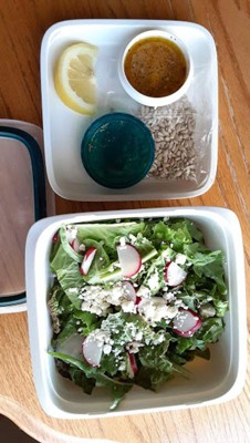 [This review was collected as part of a promotion.] Great little container. You are able to separate your ingredients in one little container so that your dry ingredients don't get soggy before you are ready to eat. The dressing container is so convenient and the perfect size for just the right amount of dressing.