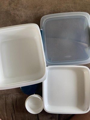 The Prep & Go Salad Container has made me prepping for lunches so much easier! The content size is 6.3 cups so you can make a pretty generous size salad! I like the container features a main compartment & top compartment that rest upon the bottom one. The compartment keep my wet and dry ingrediant separate beautifully. There is a small container included also to hold salad dressings and other sauces that can rest in the top compartment so I don't have purchase something seperate for that purpose! The container is see-through on top and the bottom part is a solid color of white. The feel is very sturdy. It is not hard to open by simply unlocking the two snap latches on two sides and lifting/pulling upward. To close is just as easy by pressing the lid down which pushes inner air out and locking the two snaps down. It is a very secure seal. In mainly keeping it upright, I have noticed no leakage. I like it is easy to keep clean by hand and they are also dishwasher safe. You can remove the inner silicone gasket for cleaning without issues of taking it off or putting it back on. The sizing is just right for eating out of and bringing along in a lunch type travel bag and so forth. Recommended.