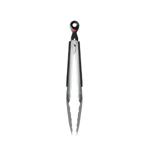 The OXO SoftWorks 9-Inch Locking Tongs are perfect for grabbing thin asparagus spears, flipping thick steaks and much more. The Tongs are made of brushed stainless steel and feature scalloped heads for a secure hold on food. Soft, comfortable non-slip handles and thumb rests absorb pressure so you can grip, toss, turn and flip without hurting your hands. The Tongs are dishwasher safe and lock closed with the simple pull of a tab.