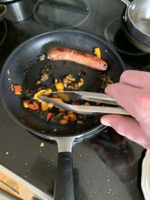 [This review was collected as part of a promotion.] I love these tongs! I’ve been using my OXO nylon tipped tongs for years. These tongs with the stainless tips round out my collection perfectly. I’ve used them for flipping bacon, chicken, fries, etc. and they’ve worked exactly as I hoped. Definitely recommend
