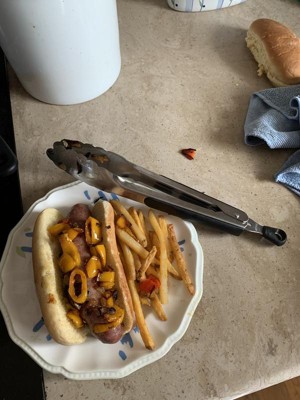 [This review was collected as part of a promotion.] These tongs are really easy to use for pretty much anything. I've mostly used them for handling and flipping meat when cooking on the stove, but they're good for the grill too and I've also used them in a pinch to flip sandwiches, etc. when my spatula is dirty. They have the perfect length to stay away from the heat but still feel like they're easy to control/navigate. Cleanup is super easy, I just throw them in the dishwasher and they come out spotless.