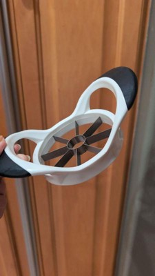 This is a good product to use for you to be able to slice apples quickly. The only thing I noticed when I use it is that when you slice down, it doesn't slice all the way through sometimes, and you'll have to flip the apple and kind of press it all the way through to make it work, either that or you pull the core upwards. Otherwise it works as it should! I like how it makes identical sized slices too. A must have for apple lovers!