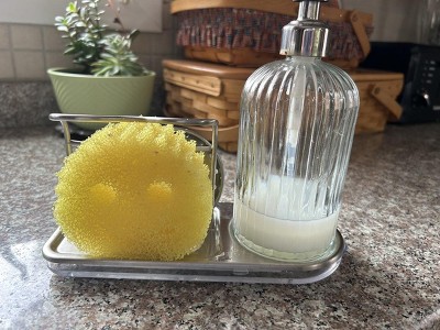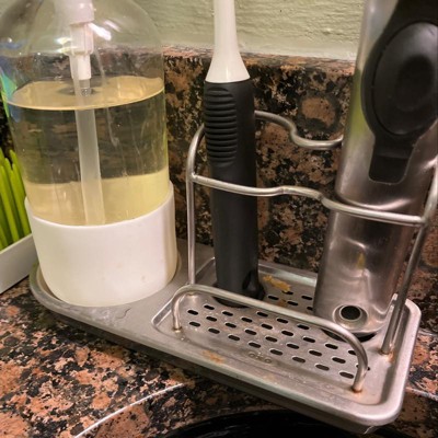 - Open area accommodates soap dispenser, mesh scrubber or palm brush