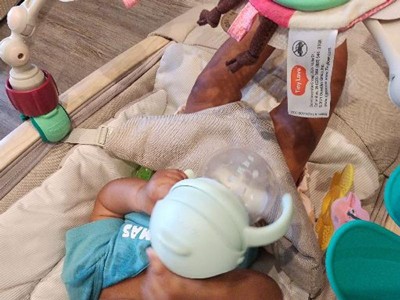 The OXO Tot Transitions Straw Cup with Handles has an almond-shaped, spill-proof straw that conforms to tot’s mouth and minimizes mess, easing the transition from bottle, breastfeeding, or sippy cup. The straw valve opens as soon as tot’s lips touch it for easy drinking, and the hinged cap closes to create a leakproof seal. The removable handles provide a comfortable grip for your little one, and the cap and straw are removable for easy, thorough cleaning. BPA free. Dishwasher safe.