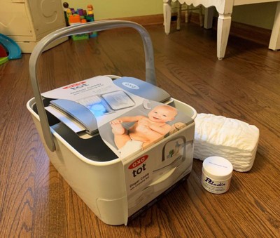 Never be caught without something you need during a diaper change. The OXO Tot Diaper Caddy with Changing Mat is a convenient way to store everything from diapers and ointments to wipes¬ and burp cloths. A generously sized, comfortable folding Mat fits right inside, so you can change baby anytime, anywhere. The wipes compartment holds a wide variety of wipes dispensers, and the drawer holds even more accessories. The locking handle makes it easy to grab and go, meaning you’ll be ready for any diaper emergency.