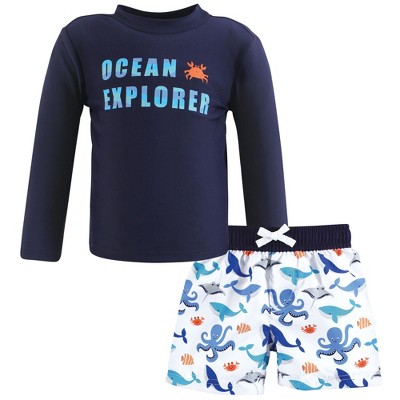 - COMPLETE SUN PROTECTION: These P.S. from Aeropostale Little Boy's 2-Piece Rashguard Swim Sets offer UPF 50+ sun protection, shielding your child's skin from harmful UV rays. The third quarter-sleeve rash guards and matching swim trunks ensure full coverage and peace of mind during outdoor adventures.