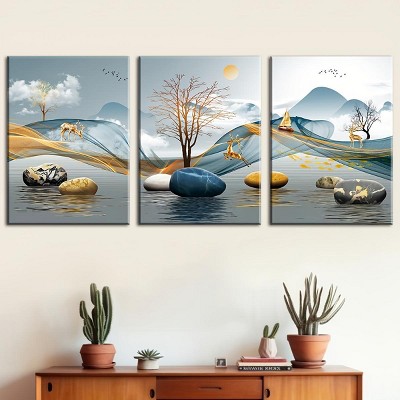 Paaaawaters High Definition Print 3 Framed Canvas Paintings - Ready to Hang City Scenery Night View Bridge Wall Art