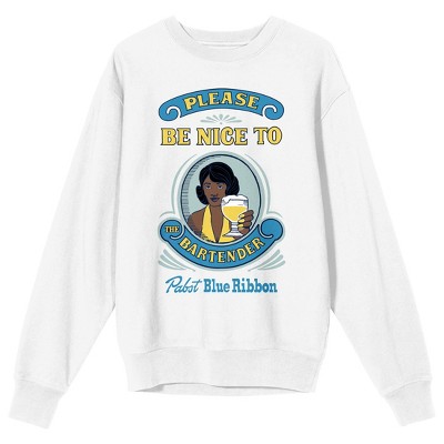 Pabst Blue Ribbon Be Nice To Your Bartender Crew Neck Long Sleeve White Adult Sweatshirt-3XL