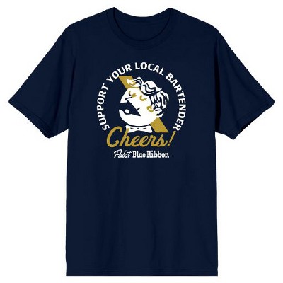 Pabst Blue Ribbon Beer Can Monster Crew Neck Short Sleeve Navy Men's T-shirt