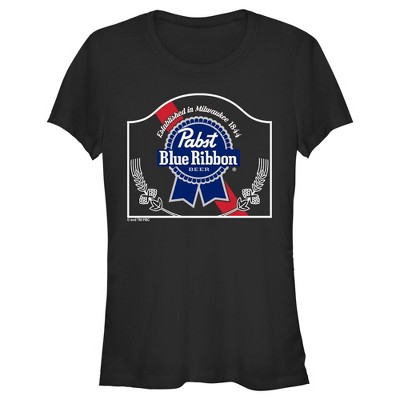 Celebrate your love for America's favorite beer, Pabst Blue Ribbon, with these fun new officially licensed styles! This Juniors' Pocket Blue Ribbon Logo Graphic T-Shirt features a cool pocket-size graphic of the iconic blue ribbon beer logo printed on the side in blue. Grab one of these new tees today and sit back, relax, and open up a cold PBR! This licensed product is intended for adults of the legal drinking age.