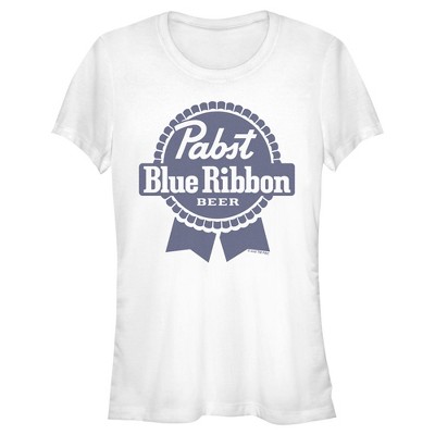 Celebrate your love for America's favorite beer, Pabst Blue Ribbon, with these fun new officially licensed styles! This Juniors' Small Pocket Blue Ribbon Logo Graphic T-Shirt features a cool graphic of the iconic blue ribbon beer logo printed on the pocket side in blue. Grab one of these new tees today and sit back, relax, and open up a cold PBR! This licensed product is intended for adults of the legal drinking age.