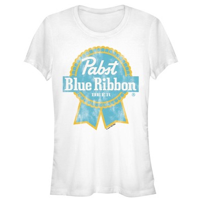 Celebrate your love for America's favorite beer, Pabst Blue Ribbon, with these fun new officially licensed styles! This Juniors' Small Pocket Blue Ribbon Logo Graphic T-Shirt features a cool graphic of the iconic blue ribbon beer logo printed on the pocket side in blue. Grab one of these new tees today and sit back, relax, and open up a cold PBR! This licensed product is intended for adults of the legal drinking age.