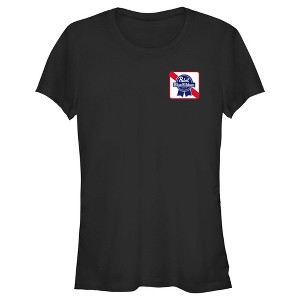 Celebrate your love for America's favorite beer, Pabst Blue Ribbon, with these fun new officially licensed styles! This Juniors' Square Logo Graphic T-Shirt features a cool pocket-size graphic of the iconic blue ribbon beer square logo printed on the pocket side. Grab one of these new tees today and sit back, relax, and open up a cold PBR! This licensed product is intended for adults of the legal drinking age.