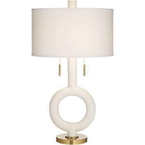 Possini Euro Design Athena 30 3/4" Tall Open Circle Large Mid Century Modern End Table Lamp Pull Chain White Finish Single Living Room Bedroom