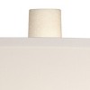 - 30 3/4" high overall. Base is 7" wide x 1" high. Drum lamp shade is 18" wide across the top and bottom x 10" high. Weighs 14.8 lbs.