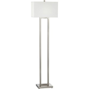 Possini Euro Design Duarte Modern Industrial 61" Tall Standing Floor Lamp Open Column Silver Metal Satin Nickel Finish Living Room Bedroom House