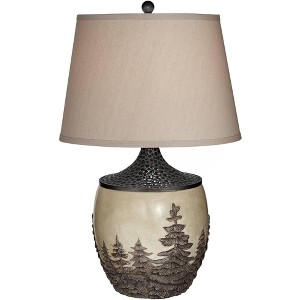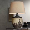 Franklin Iron Works Great Forest 30" Tall Large Rustic End Table Lamp Brown Fir Tree Pattern Single Beige Shade Living Room Bedroom (Colors May Vary)