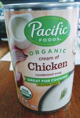 [This review was collected as part of a promotion.] Pacific Foods Organic Cream of Chicken Condensed Soup is a healthier alternative to the traditional cream of chicken. I used it to simmer chicken breast and herbs. It was just as tasty, and to me, less salty than what I am normally used to