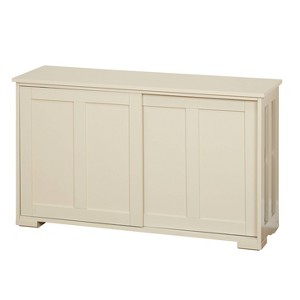 The stackable construction makes for a versatile solution for any close quarters. Featuring an antique white finish and sliding wooden doors, this cabinet will complement most décor. The adjustable placement of the shelf lets you choose the size of the space you need to hold products to accommodate pieces of varying heights.