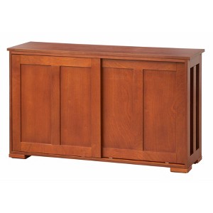 The stackable construction makes for a versatile solution for any close quarters. Featuring an rich walnut finish and sliding wooden doors, this cabinet will complement most décor. The adjustable placement of the shelf lets you choose the size of the space you need to hold products to accommodate pieces of varying heights.