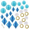 Step your decoration game with this Packed Party honeycomb bridal garland. The set includes a mixture of wedding rings, blue honeycomb, and blue diamonds, bringing extra flair to any party. Gold foil accents add a touch of style. With 13 feet of string, this set is easy to assemble and will have your space party-ready in moments for everything from bridal showers to bachelorette parties.