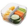 - Leak-resistant divider slides and snaps into channels to separate food.