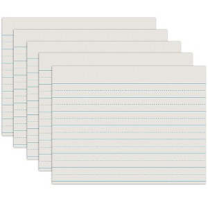 Pacon Newsprint Handwriting Paper, Alternate Dotted, Grade 1, Ruled Long, 11" x 8.5", 2500 Sheets | Pacon Newsprint Handwriting Paper, Alternate Dotted, Grade 1, Ruled Long, 11" x 8.5", 2500 Sheets | Clean white newsprint paper has light blue ruling on both sides makes great practice paper. Sheets are ruled 1" the long way, and feature a 1/2" dotted midline to serve as a guide for controlled writing. This ruling is recommended for Grade 1. Includes 500 sheets per package. Measures 11" x 8-1/2". Sold as 5 packs for a total of 2500 sheets.