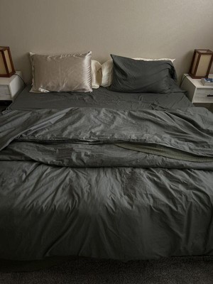 I got the sheets and duvet cover in castor green—a lovely, deep soothing color. I love getting in at night. The percale is cool and a little crinkly but that’s expected. The sheets soften up after a few nights. Love that they are all organic cotton. Buy on sale! Recommend!