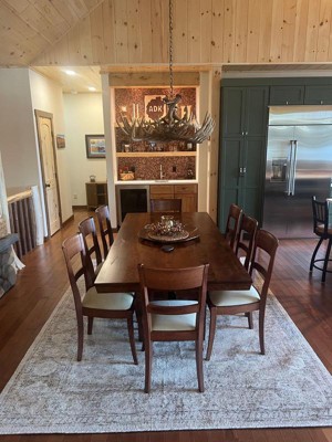 [This review was collected as part of a promotion.] The rug is beautiful overall. I specifically wanted a rug that would last and look beautiful. This rug appeared to be great but after a few months, the fibers are going a little bald in some areas. We have a very clean, well groomed golden retriever. She never goes on furniture and usually just lays around (she is 9 yrs old). The rug catches all her fur like velcro and the vacuum is unable to get it out. I wish I went with a different rug, especially for the price point.