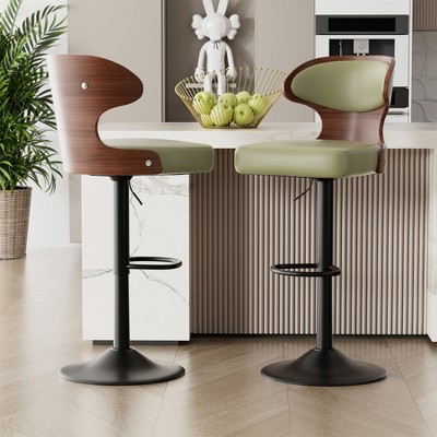 PAGED 1Pc Bar Stools, Bentwood Swivel Counter Stools with Back & Footrest, PU Leather Upholstered Dining Chairs for Kitchen Island