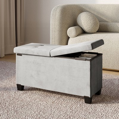 PAGED 30" Storage Ottoman Modern Shoe Bench with Padded Seat, Linen Fabric Entryway Table for Living Room, Bedroom, Space Saving, Gray