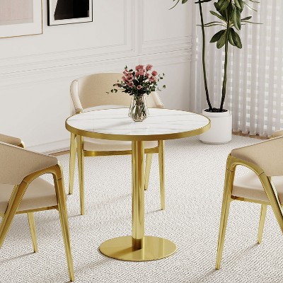 PAGED Dining Table Modern Round Kitchen Table Dining Room Table with Stable Cylindrical Metal Base for Living Room